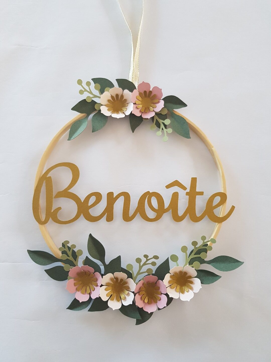Couronne fleurs et prénom à personnaliser (modèle Benoite)