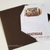 Carte à personnaliser. Nous envoyer, en parallèle de la commande, un mail avec le prénom de l’enfant, son âge, la date et lieu de la fête, et vos coordonnées à faire figurer sur le carton.
